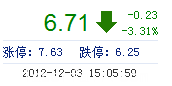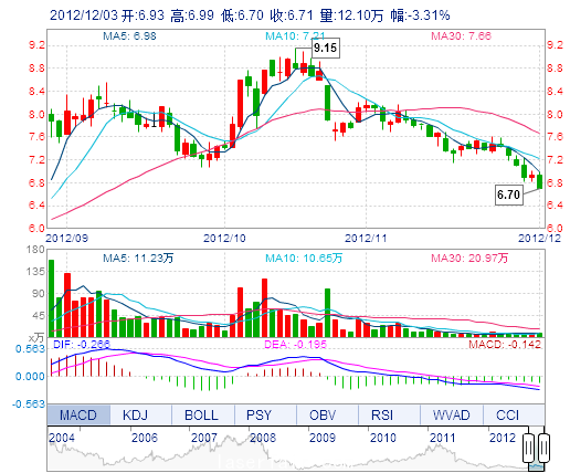 | 今 開: | 6.93 | 成交量: | 12.10萬(wan) 手 | 振 幅: | 4.18% |