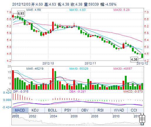 | 今 開: | 4.60 | 成交量: | 5.93萬(wan) 手 | 振 幅: | 5.45% |