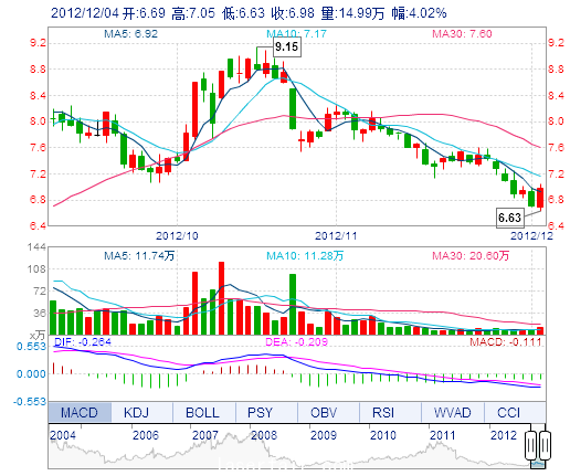 | 昨 收: | 6.71 | 流通市值: | 66.03億(yi) | 市盈率TTM: | 11.46 |