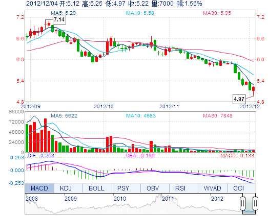 | 今 開: | 5.12 | 成交量: | 7000手 | 振 幅: | 5.45% |