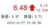 | 今 開: | 6.30 | 成交量: | 2.45萬(wan) 手 | 振 幅: | 3.94% |