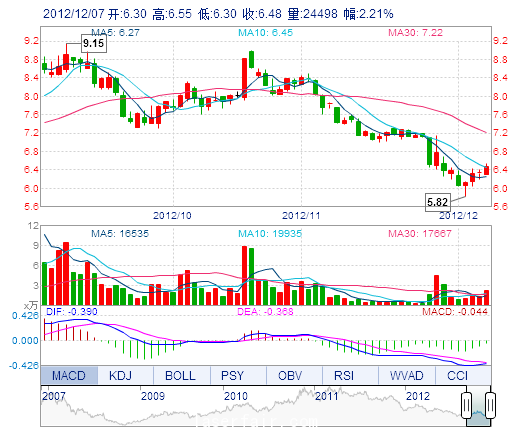 | 最 低: | 6.30 | 總市值: | 12.91億(yi) | 市淨率: | 2.60 |