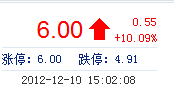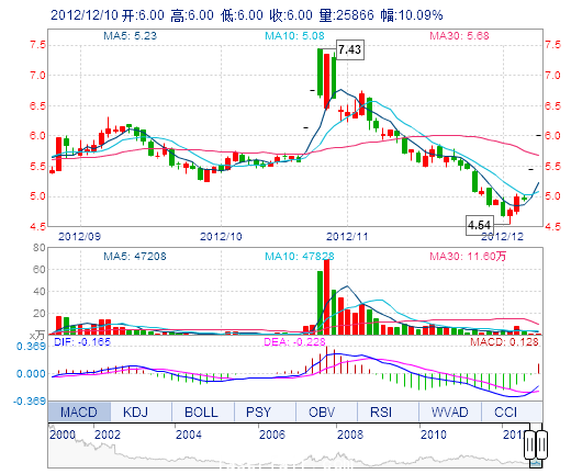 今 開: 6.00 成交量: 2.59萬(wan) 手 振 幅: 0.00% 最 高: 6.00 成交額: 1551.96萬(wan) 元 換手率: 0.59% 最 低: 6.00 總市值: 26.21億(yi) 市淨率: 1.95 昨 收: 5.45 流通市...