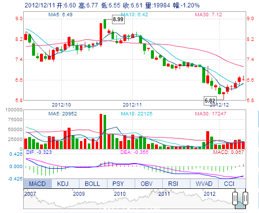 | 今 開: | 6.60 | 成交量: | 2.00萬(wan) 手 | 振 幅: | 3.29% |