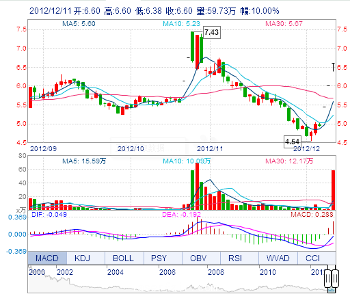 | 今 開: | 6.60 | 成交量: | 59.73萬(wan) 手 | 振 幅: | 3.67% |