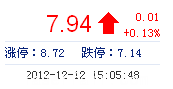 | 今 開: | 7.88 | 成交量: | 11.77萬(wan) 手 | 振 幅: | 2.77% |