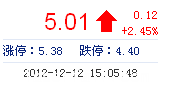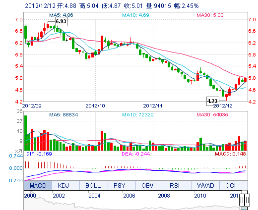 | 今 開: | 4.88 | 成交量: | 9.40萬(wan) 手 | 振 幅: | 3.48% |