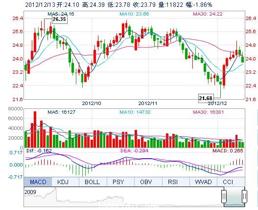 | 今 開: | 24.10 | 成交量: | 1.18萬(wan) 手 | 振 幅: | 2.52% |