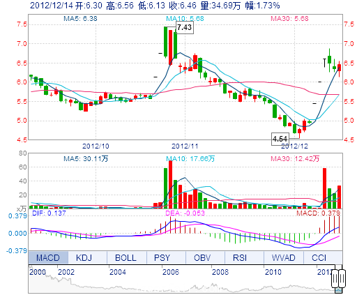 | 最 高: | 6.56 | 成交額: | 2.22億(yi) 元 | 換手率: | 7.94% |