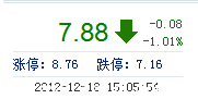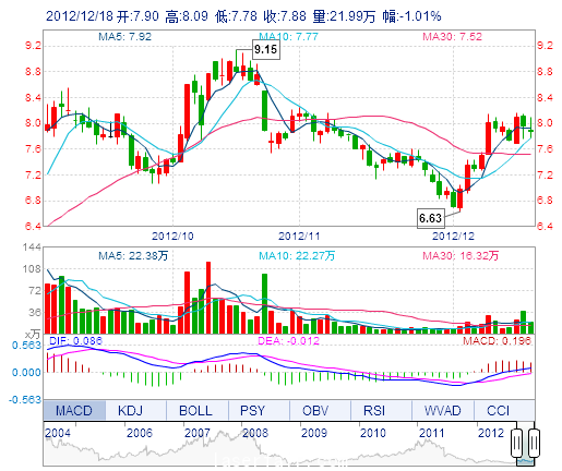 | 昨 收: | 7.96 | 流通市值: | 74.54億(yi) | 市盈率TTM: | 12.94 |
