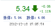 | 昨 收: | 5.40 | 流通市值: | 47.59億(yi) | 市盈率TTM: | 31.86 |