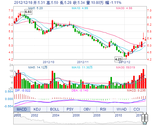 | 最 高: | 5.50 | 成交額: | 5826.64萬(wan) 元 | 換手率: | 1.21% |
