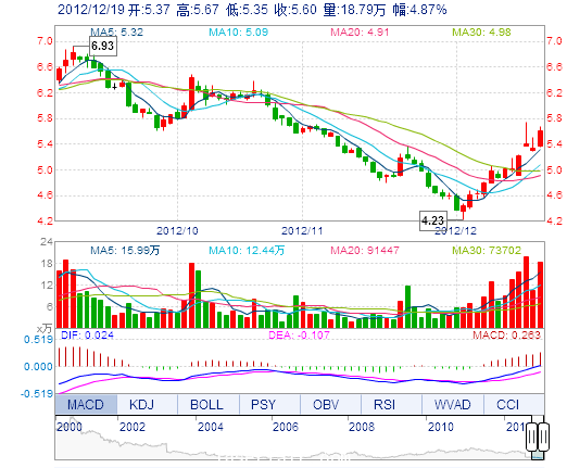 | 今 開: | 5.37 | 成交量: | 18.79萬(wan) 手 | 振 幅: | 5.99% |