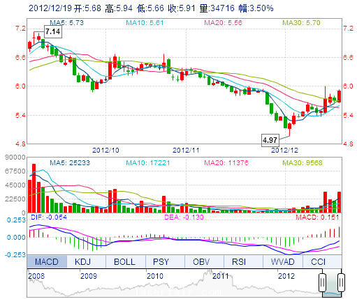 | 今 開: | 5.68 | 成交量: | 3.47萬(wan) 手 | 振 幅: | 4.90% |