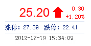 | 最 高: | 25.40 | 成交額: | 5525.41萬(wan) 元 | 換手率: | 1.17% |