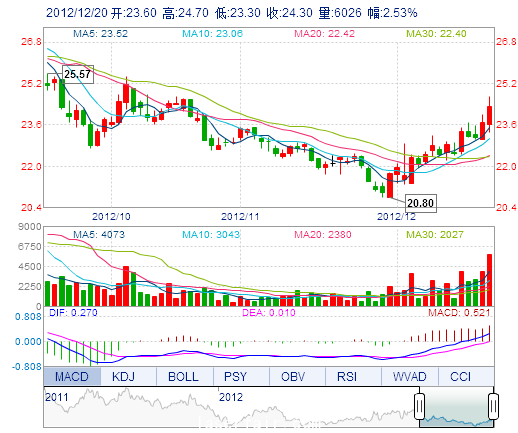 今 開: 23.60 成交量: 6026手 振 幅: 5.91% 最 高: 24.70 成交額: 1453.88萬(wan) 元 換手率: 5.76% 最 低: 23.30 總市值: 8.51億(yi) 市淨率: 2.96 昨 收: 23.70 流通...