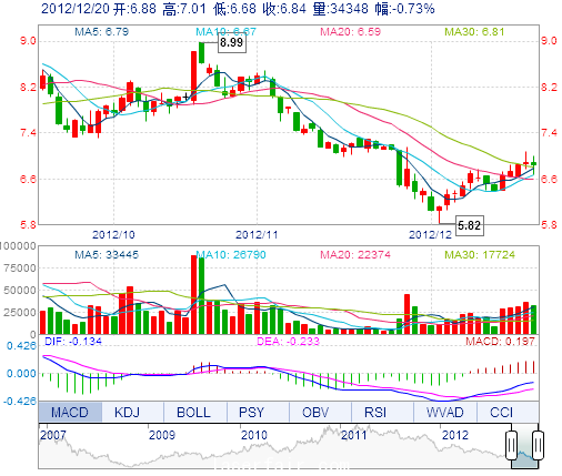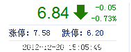 | 今 開: | 6.88 | 成交量: | 3.43萬(wan) 手 | 振 幅: | 4.79% |