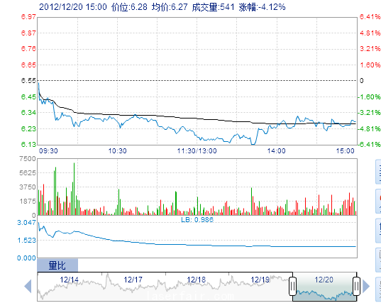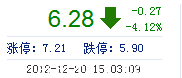 | 今 開: | 6.54 | 成交量: | 26.88萬(wan) 手 | 振 幅: | 6.56% |