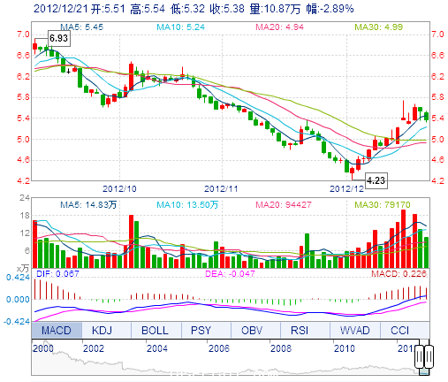 | 最 低: | 5.32 | 總市值: | 47.94億(yi) | 市淨率: | 1.84 |