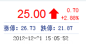 | 最 高: | 25.19 | 成交額: | 1952.25萬(wan) 元 | 換手率: | 7.53% |