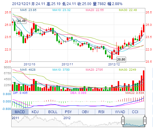 | 最 低: | 24.11 | 總市值: | 8.75億(yi) | 市淨率: | 3.05 |