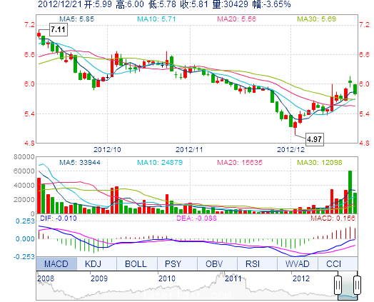 | 最 低: | 5.78 | 總市值: | 16.56億(yi) | 市淨率: | 2.70 |