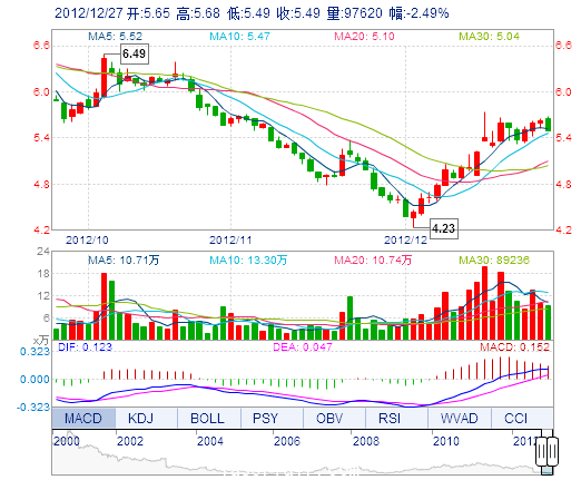 | 今 開: | 5.65 | 成交量: | 9.76萬(wan) 手 | 振 幅: | 3.37% |
