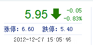 | 最 高: | 6.02 | 成交額: | 1190.32萬(wan) 元 | 換手率: | 0.73% |