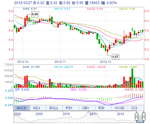 | 今 開: | 6.02 | 成交量: | 2.00萬(wan) 手 | 振 幅: | 1.67% |