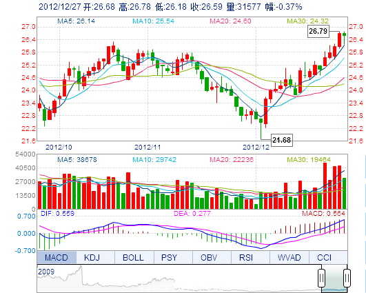 | 今 開: | 26.68 | 成交量: | 3.16萬(wan) 手 | 振 幅: | 2.25% |