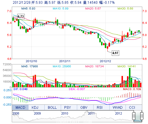 | 最 高: | 5.97 | 成交額: | 860.70萬(wan) 元 | 換手率: | 0.53% |