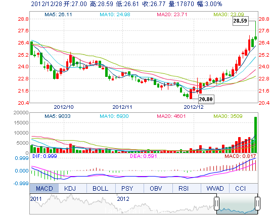 | 最 高: | 28.59 | 成交額: | 4988.40萬(wan) 元 | 換手率: | 17.07% |