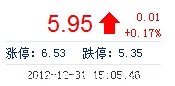 | 昨 收: | 5.94 | 流通市值: | 16.36億(yi) | 市盈率TTM: | 32.95 |