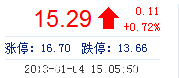 | 今 開: | 15.21 | 成交量: | 1.29萬(wan) 手 | 振 幅: | 2.64% |