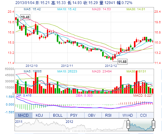 | 昨 收: | 15.18 | 流通市值: | 5.09億(yi) | 市盈率TTM: | 46.02 |