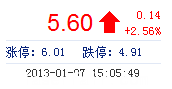 | 最 高: | 5.61 | 成交額: | 4382.34萬(wan) 元 | 換手率: | 0.89% |