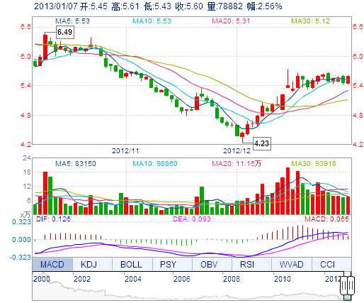 | 最 低: | 5.43 | 總市值: | 49.90億(yi) | 市淨率: | 1.91 |