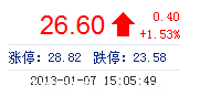 | 今 開: | 26.35 | 成交量: | 4624手 | 振 幅: | 3.02% |