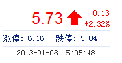 | 今 開: | 5.61 | 成交量: | 14.32萬(wan) 手 | 振 幅: | 3.39% |