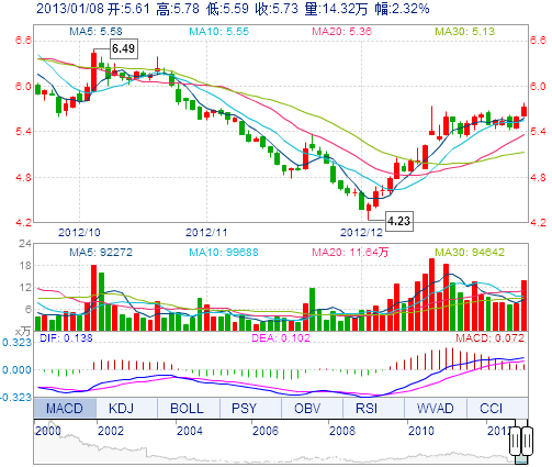 | 昨 收: | 5.60 | 流通市值: | 51.06億(yi) | 市盈率TTM: | 34.19 |