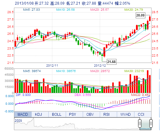 | 最 高: | 28.09 | 成交額: | 1.23億(yi) 元 | 換手率: | 2.37% |