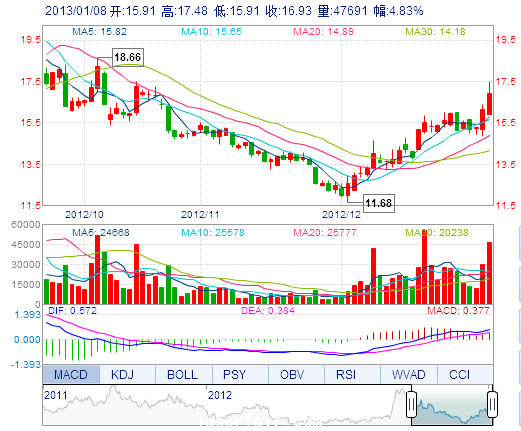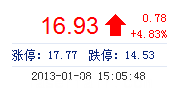| 最 高: | 17.48 | 成交額: | 7978.97萬(wan) 元 | 換手率: | 14.32% |