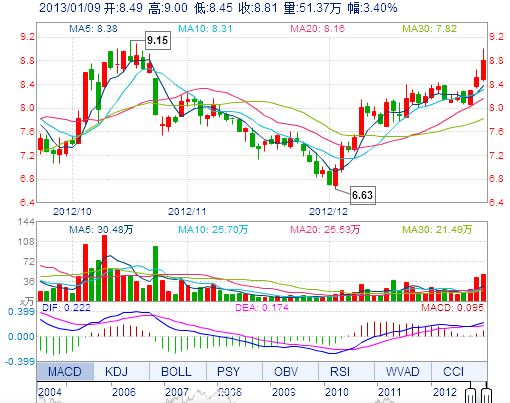 | 今 開: | 8.49 | 成交量: | 51.37萬(wan) 手 | 振 幅: | 6.46% |