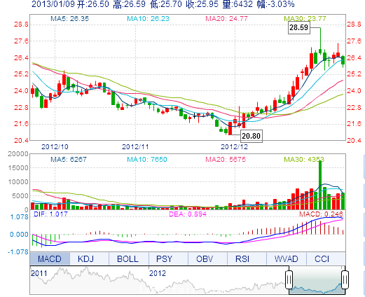 | 今 開: | 26.50 | 成交量: | 6432手 | 振 幅: | 3.33% |