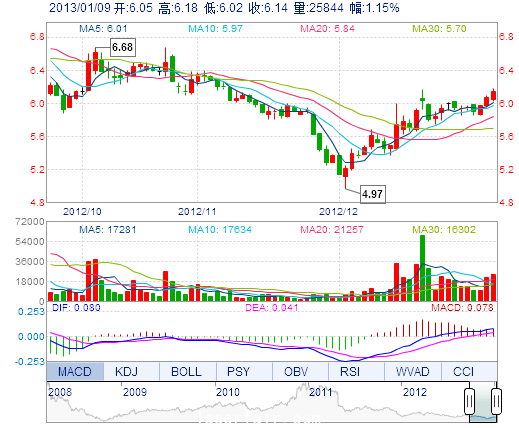 | 今 開: | 6.05 | 成交量: | 2.58萬(wan) 手 | 振 幅: | 2.64% |