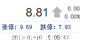| 昨 收: | 8.81 | 流通市值: | 83.34億(yi) | 市盈率TTM: | 14.46 |