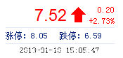 | 今 開: | 7.45 | 成交量: | 4.90萬(wan) 手 | 振 幅: | 3.42% |
