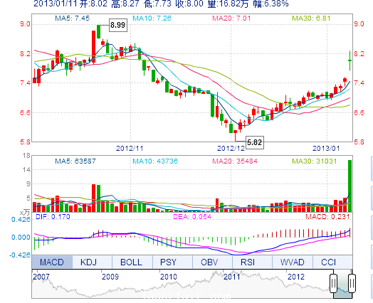 | 今 開: | 8.02 | 成交量: | 16.82萬(wan) 手 | 振 幅: | 7.18% |