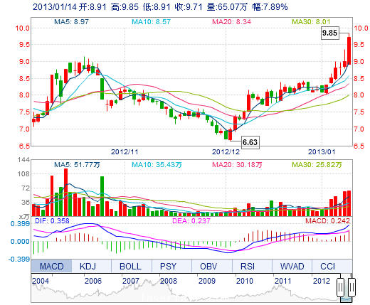 | 最 高: | 9.85 | 成交額: | 6.20億元 | 換手率: | 6.88% |