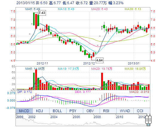 | 今 開: | 6.50 | 成交量: | 20.77萬(wan) 手 | 振 幅: | 4.61% |